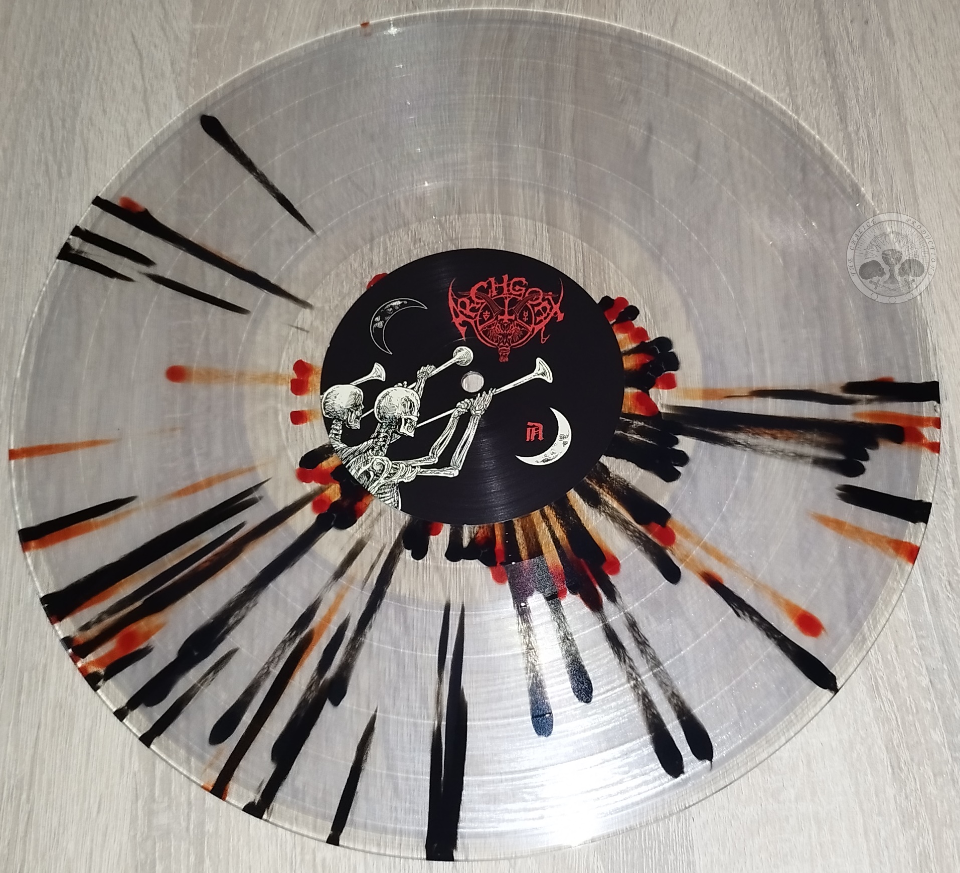 Pressed on clear heavy vinyl w/ black & blood red splatters. Comes with a 4-page 12"x12" booklet, A2 poster and a download card. Colors on final record may vary to a degree from the mockup.