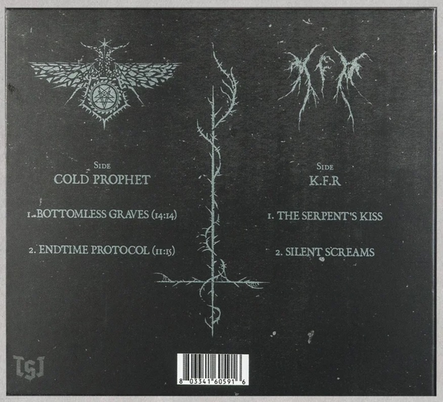 Finally, some new material from the Prophet! Death Ambience at its absolute finest. Split release with Maxime Taccardi’s beyond fucked up project K.F.R. Hand-numbered and limited to 500 copies only.