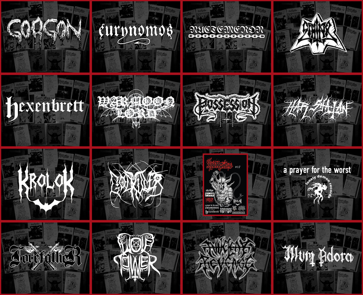 Gorgon, Eurynomos, Nuctemeron, Sphinx, Hexenbrett, Warmoon Lord. Possession, Har Shatan, Krolok, Godkiller, Forefather, A Prayer for the Worst, Nuclear Revenge, Wolftower (Fin).