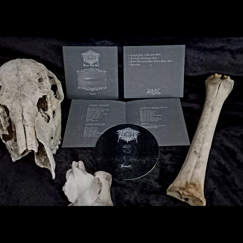 CD preto com capa e encarte cinza, três ossos e crânio sobre fundo preto
