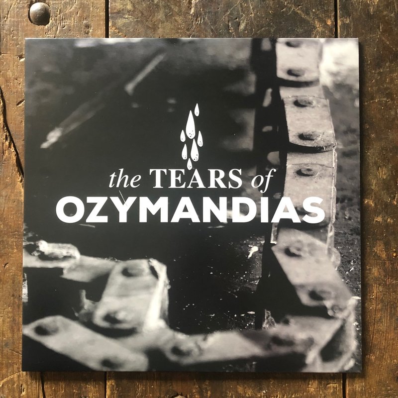 Capa de álbum preto e cinzento com texto 'the TEARS of OZYMANDIAS' e imagem de corrente metálica