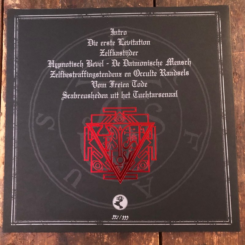- Jacket made of black cartonstock with silver print and red hotfoil debossing